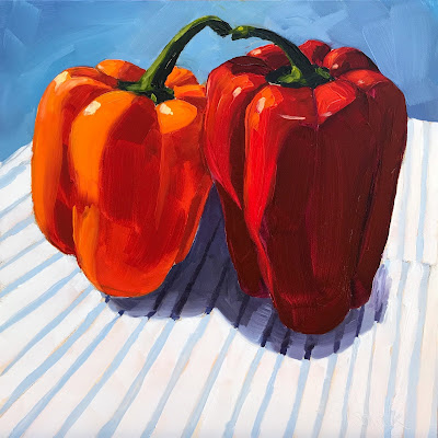 A Red Hot Romance - 8x8 May 04, 2018 Turns out bell peppers are very fun to paint. Oil on panel, 8x8 inchesView in shopAlso, studio tour reception TONIGHT at Palm Loft Gallery, 5:00 hope to see you there! ← Older Post Newer Post →