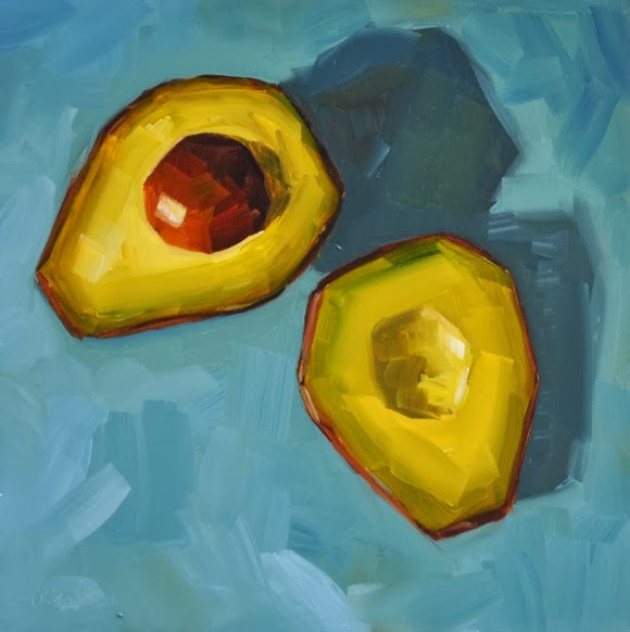Avocado Halves - 6x6 February 26, 2014 We planted avocado trees in our backyard (smart!)....but they have yet to produce an avocado that ripens instead of just shrivels and rots (sad). So, this one's from the farmers market. Oil on panel, 6x6 Click here to bid ← Older Post Newer Post →