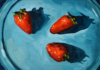 Berries on Blue - Still life oil painting - 5x7 May 20, 2011 • still life oil painting • strawberries I've been wanting to paint some strawberries for a while now....but I kept forgetting and eating them all before I could. Oil on canvas panel, 5x7 inchesSOLD ← Older Post Newer Post →