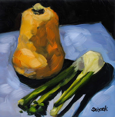 The original title for this painting was going to be "Butternut and Leek" because that's what I meant to buy. The thing is I had never bought a leek before, I didn't really know what one looked like...so I trusted Albertson's when they told me that this fennel was a leek.