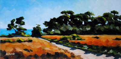I was a little nervous to paint the bluffs. I feel like it's a hot topic around here, and I didn't want my first attempt to be horrible :) But I really like this one. I love when a painting turns out well and was fun to paint. I love how the fields around this area are an orangish color, it makes a nice contrast with the ocean and the blue sky.
