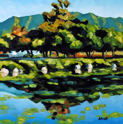 This is the larger version of yesterday's painting. I'm not completely satisfied with it, and I even did a few touch ups on it a few hours after I finished (something I never do). I think I only made things worse. The actual painting looks a lot better than this photo, it's cloudy today and for some reason I can't get a good shot of anything. I'm trying to paint a few more 12x12 pieces (the biggest size I have at the moment) so I'll actually have something to show at the end of May.