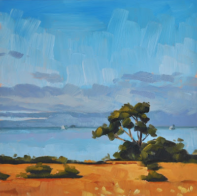 Island Fog - 6x6 October 16, 2013 A depiction of that persistent coastal fog blocking out the view of the Channel Islands from the Carpinteria bluffs. Oil on panel, 6x6 inchesClick here to bid ← Older Post Newer Post →