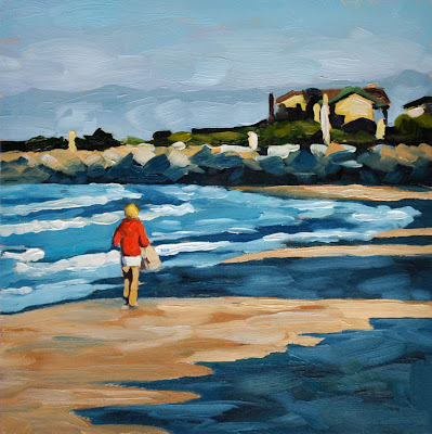 One of the few other people on the beach at sunrise, I don't know which beautiful beach house she lived in, but she seemed very happy walking home with her bad of groceries.