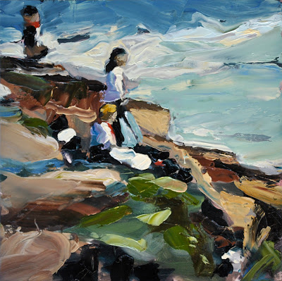 I'm starting a brief new series, I felt a little bit stuck and a little frustrated (which always seems to happen after I complete a few paintings that I really like...). I find that mixing things up a little often helps. So I'm doing a series of small paintings based on other larger paintings by artists I admire. I'm trying to keep it loose, even a little abstract. So far I'm really enjoying this little experiment.