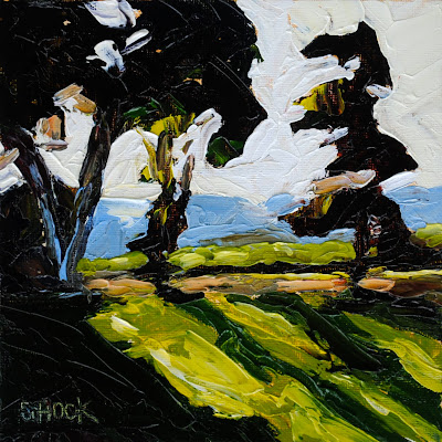 It's probably been 6 years since I've done a palette knife painting, but yesterday I saw this painting and it inspired me to try it out again. I just loved how it was sort of representational but abstract at the same time. I loved the broad green color and how juicy the whole thing looked...I could just stare at it forever.
