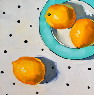 Polka Dots and Lemons - 6x6 November 14, 2012 • lemons • still life lemon painting • still life oil painting I remembered I had a few of these antique saucers, I can't believe it's taken me so long to include one!Oil on panel, 6x6 inches Click here to view in shop ← Older Post Newer Post →