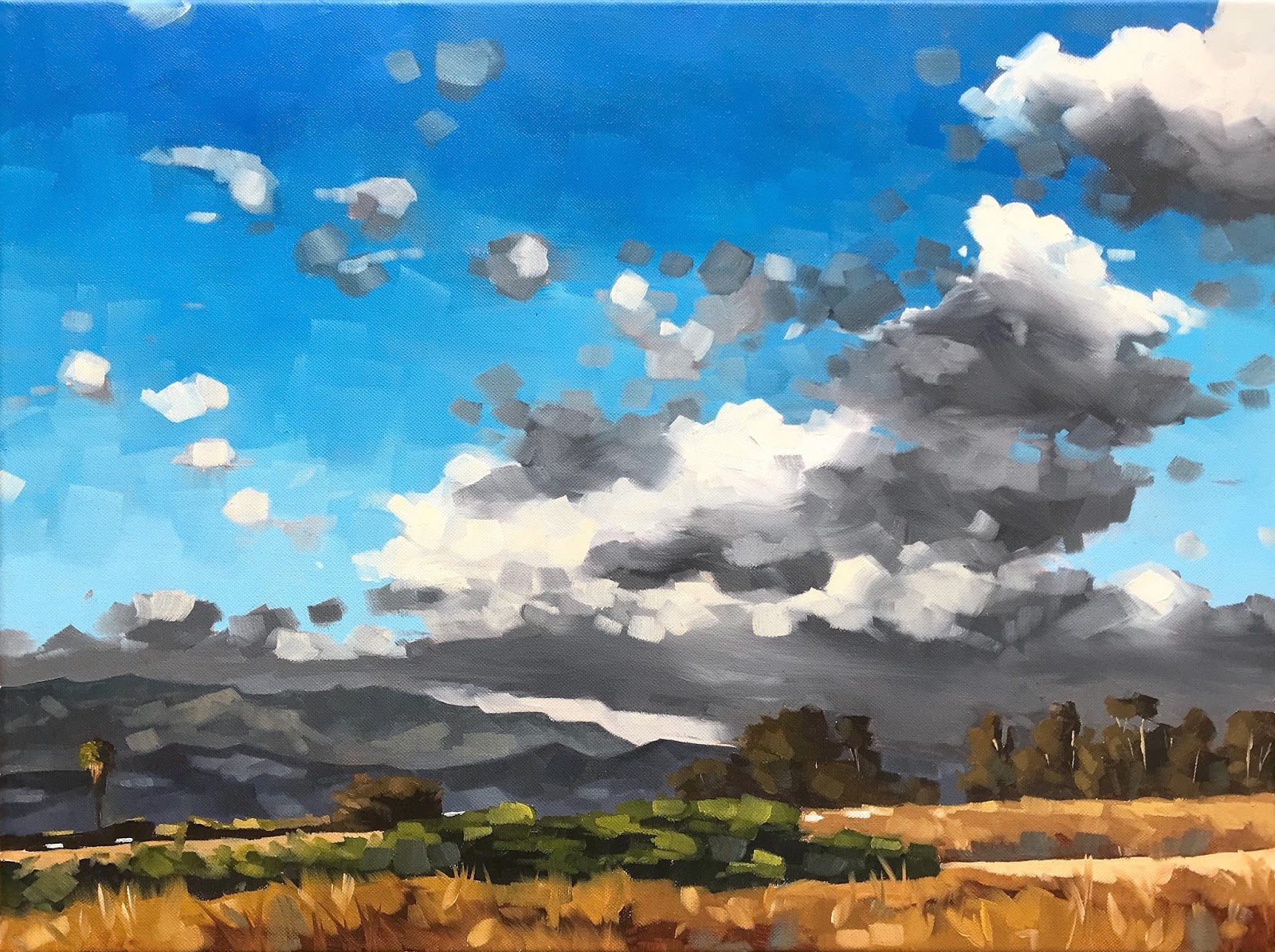 Storm Clouds over Carpinteria - 18x24 June 05, 2018 These clouds started dropping snow on the tops of the mountains while I there, it was such a crazy sight. Oil on canvas, 18x24View in shop ← Older Post Newer Post →