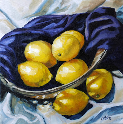 basket daily painting for sale fruit lemons purple still life painting yellow
