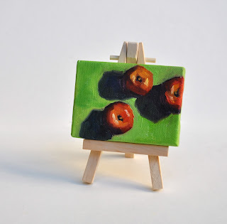I thought these 2"x3" canvases would be a nice little addition to my display table this saturday. I thought about turning them into ornaments, but decided against it. I plan to sell them with the easels for $25 each. Come check it out this saturday! :)