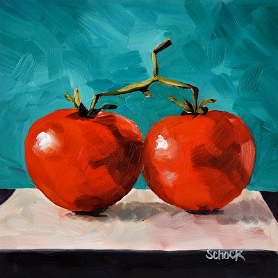 I had so much fun painting this one. I was at the market and saw these two little tomatoes and just had to buy them. I took a lot of reference photos so you'll probably see more of these in the future.