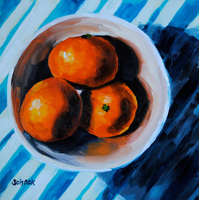 blue stripes bright still life daily painting for sale orange sharon schock simple still life still life oil painting tangerine still life