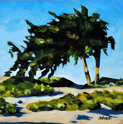 Doesn't this tree look like something out of a Dr. Seuss book? I saw it by the beach one day and I just had to paint it. There were others around it too, they'll be making up tomorrow's painting.
