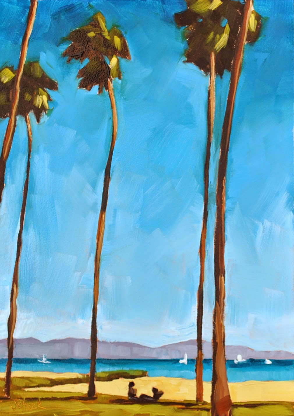 The part that drew me to this scene was that intensely blue sky, how flat the sand looks, and how the palm trees were reaching up so gracefully... I kind of want to paint this on a very large scale sometime.