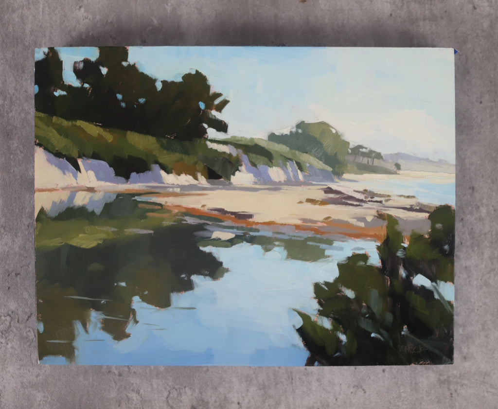 Oil on 3/4” cradled panel, 6x8 inches. This painting has thin clean wood sides and can be hung with or without a frame.